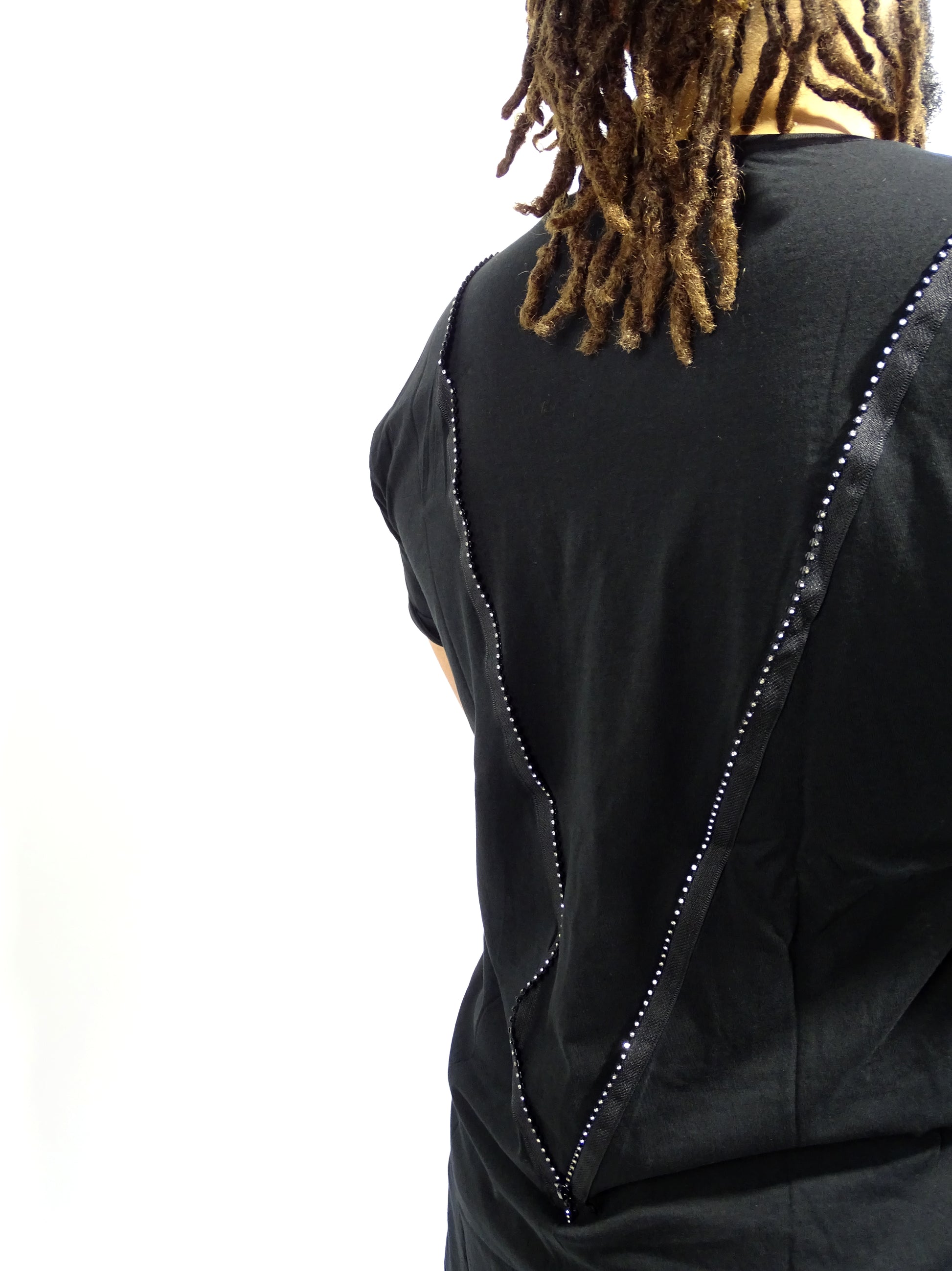 "Le T-shirt long à strass qui te donne un look unique – luxe discret et impact assuré."